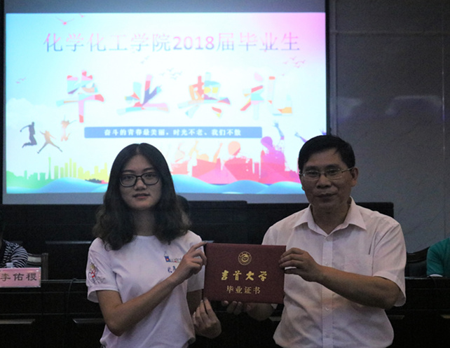 毕业典礼在雄壮的校歌中拉开序幕。颜文斌向2018届毕业生致辞。覃事栋、李佑稷分别宣读优秀毕业论文名单、2018届优秀毕业生名单。学院领导为获奖毕业生颁发证书。随后,颜文斌逐一为毕业生颁发毕业证书,并合影留念。紧接着,优秀本科毕业生代表邹坚桥、研究生代表李叶华发言,他们回忆在校的奋斗时光,表达对学院领导老师的感激和不舍之情。教师代表吴贤文结合四年班主任工作给与毕业生希望和祝福。学生代表陈锋带领全体毕业生进行离校宣誓。彭水英深情寄语全体毕业生。