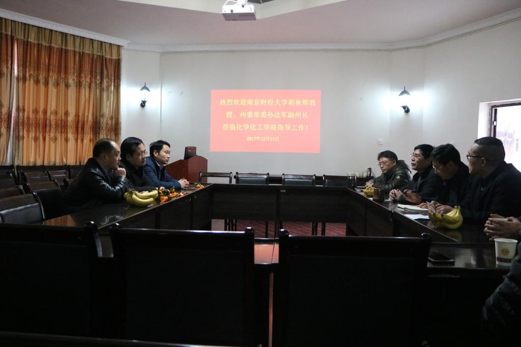 本网讯(华骏)12月11日,州委常委孙法军副州长、南京财经大学胡秋辉教授莅临新葡的京官网指导工作,与食品科学与工程教研室老师进行了座谈,座谈会由院长颜文斌主持,科技处副处长汤自军出席了座谈会。